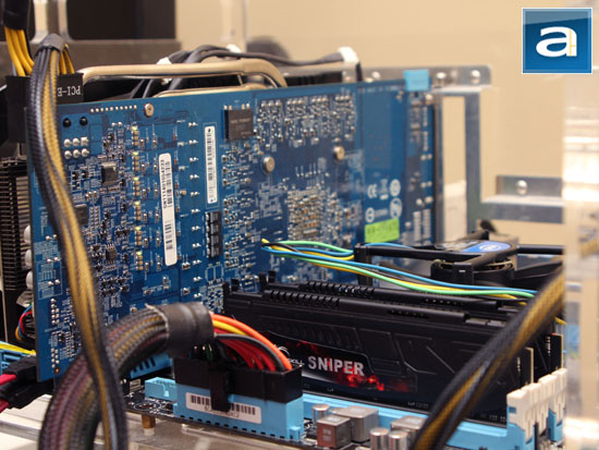 In the center of it all is AMD's Radeon 6870 "Barts" graphics processor unit, which we have discussed in detail in the preceding page. What's special about Gigabyte's Super Overclock series the GPU Gauntlet -- where the GPU and RAM are specifically cherry picked for better overclocking performance. This GPU is designed to run at 900MHz stock as aforementioned, but Gigabyte gave it a slight bump in the factory firmware to run it at 950MHz; a modest 5.6% overclock. Our card came with eight Hynix H5GQ1H24AFR memory ICs for a total of 1GB GDDR5 graphics memory. That is 128MB per chip, running at 1100MHz (4400MHz effective) from AMD's card specifications at 1050MHz (4200MHz effective) for a yet again modest 5% overclock. We will see how well it goes above that later on in our review.