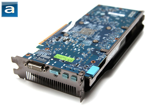 Turning the graphics card around, Gigabyte's signature blue PCB can be seen more clearly. From an aesthetics point of view, I have never really liked Gigabyte's older blue motherboards in my windowed case, but as far as graphics cards are concerned that has never really been a problem for me. All connectors come with a blue cap out of the box for extra protection. Like all modern midrange to high performance video cards, the Gigabyte Radeon HD 7870 2GB OC occupies two slots, and the rear connector panel takes advantage of this configuration. One DVI-I port is situated on the very left, followed by an HDMI and two Mini-DisplayPort connectors. Yep, you will only get one DVI-I port. This will pose a problem for those who has a dual monitor configuration, and can only do so via DVI. I think an HDMI to DVI adapter will be a very appropriate accessory out of the box. A small vent is implemented into the second slot area for direct heat exhaust outside the chassis. Internally, its CrossFire bridge connector is located on the left side of the outer edge. And finally, as discussed on the previous page, the connection interface is PCI Express 3.0.