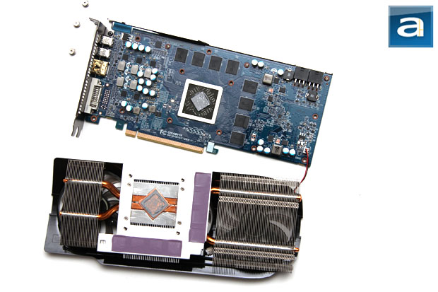 The custom heatsink features direct heatpipe contact over the GPU core with thermal pads that go over the memory chips to provide additional cooling. The heatsink base has a fairly smooth finish with no excess thermal paste, so it makes pretty good contact with the Radeon HD 7870 chip during operation. With all these in mind, Gigabyte promises 10-30% lower power switching loss, 10-30% better overclocking capabilities, and 5-10% lower temperatures just purely due to electronics. We will see how it works out in just a moment.