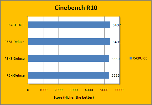 For this review, we've updated to the latest version of Cinebench, Cinebench R10, for our benchmarking. Generally speaking, all four boards up for the tests were as close as they can get to each other for the single threaded performance tests. However, once the X-CPU (Multithreaded) test is dropped into the zone, the Asus P5E3-Deluxe and Gigabyte X48T-DQ6 again posted relatively better leads -- where the Gigabyte board again had a slight edge over the Asus X38 motherboard.
