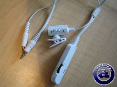 The extension cord with integrated volume control module and clip on microphone. I am not a big fan of these kind of thick plastic wires with straight line textures running up and down (Reminds me of those orange Home Depot electrical extension cords). Anyway, I found the non-removable 1 m cord way to short for my liking, so using the extension is basically required without a doubt. It comes with a sound control module with a 3.5mm headphone jack at one end with the wire going out the other to the audio source. The mic is pretty much identical to the one that comes with Icemat Siberia In:Ear; on the mic itself is an on/off switch and can be attached to the extension cord. The connectors on the other end are color coded to prevent confusion.