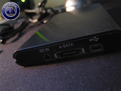 The connection panel is located at the back of the Icy Box 2.5" enclosure. From the left is a DC power input, and then an eSATA port as well as an USB connector. The USB jack is a non-proprietary, standard digital camera connector. There's no on/off switch available on the Icy Box 2.5" SATA enclosure.