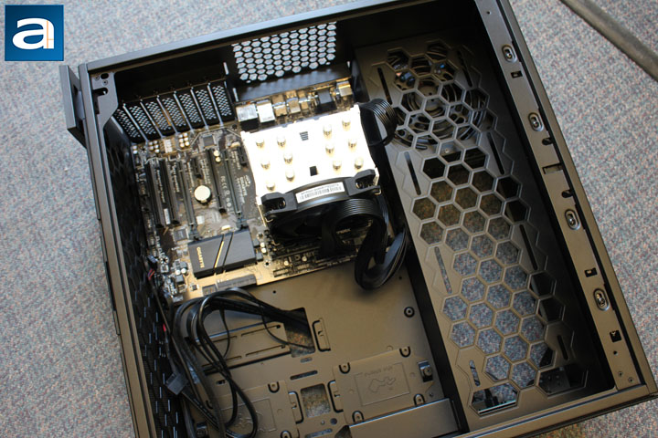The computer building process was enjoyable with the In Win 305. It was really easy to work with, since everything was laid out in pretty standard manner. I first installed the power supply into the PSU chamber. The power supply used for this computer is the SilverStone Essential Gold ET750-HG 750W, which features a semi-modular design. Thanks to the grille on the right side panel, the cooling performance for PSU is very good. For the CPU cooling, a Scythe Mugen 5 cooler was mounted on my Gigabyte GA-H170-D3HP motherboard. The position of the motherboard tray opening of the In Win 305 matches perfectly for the CPU position, therefore the heatsink can be installed without any trouble. If you like bigger water coolers, the radiator can be mounted on the PSU chamber; just remember to make sure the radiator is not overlapped with the power supply for better cooling performance.