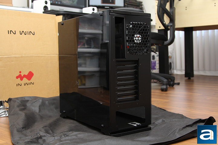 Even more so than the Fractal Design Define R5, the In Win 805 was clearly designed by someone with a ruler. But if you say there are only so many ways you can come up with a computer case if you were limited to using a ruler, place the Define R5 and 805 next to each other, and you will see how two products, both consisting of almost only straight lines, made for the same purpose, can turn out to be so different in the end. This mid-tower caught my attention the first time I saw its photos on the internet, and it totally blew me away the first time I saw it in real life... and the second time... and the third. Simply put, the In Win 805 is a stunning piece of modern art. Its rectangular shape is a lot more conservative than the 904 Plus with rounded corners and other unconventional design elements, but In Win's implementation of full sized, 3mm tinted tempered glass panels on three profile sides of the 805 is both ambitious and brilliant. There is no room for any external 5.25" drive bays, but behind the glass is a honeycomb mesh with In Win's logo in the middle, which can accommodate up to two 120mm or 140mm fans. On the side, In Win's logo is prominently shown, and will light up when turned on. Complete with a cool brushed aluminum top, and a touch of red accent in front for our particular model, the end result is outstanding. It is minimalist and simple, but without a thread of boring. It is a level of premium that is a whole class above the competition. I like it. A lot.
