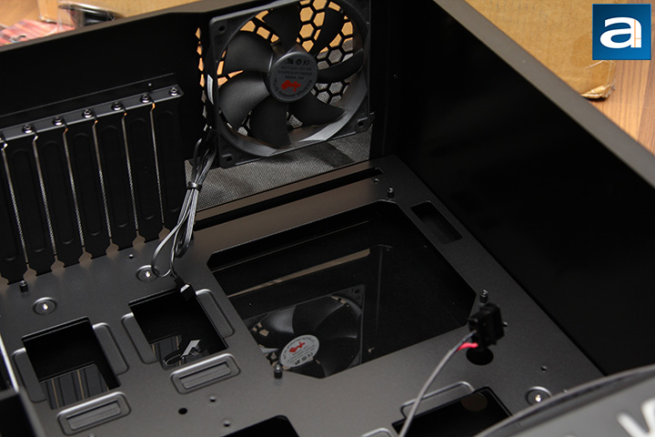 A large opening for routing your PSU cables is appropriately placed adjacent to the expected location of your power supply, but if your power supply is too long, then you will run into some trouble. Fortunately, we have 23cm of room, so I will not be too worried in this regard. Two bottom 120mm fans can be installed into the 805 by removing the bottom drive rack.