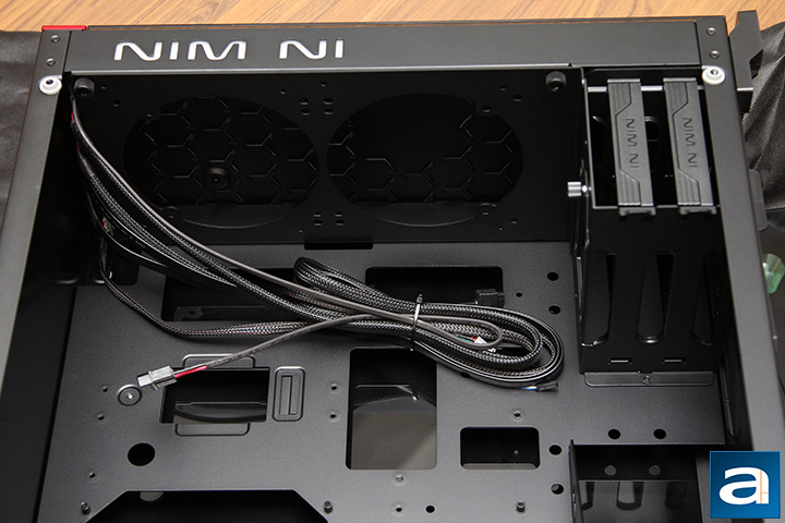 Up to two 120mm fans can be installed in this location to draw cool air into the system from the front. The chassis can also accommodate 280, 240, 140, or 120mm radiators of up to 60mm thickness. In Win includes no fans in this area from the factory, which is somewhat of a surprise to me, considering the chassis is $200 at press time. The longest video card you can fit in the 805 is 12.5", with a bit of tolerance room, depending on how thick your fan and/or radiator is in front.