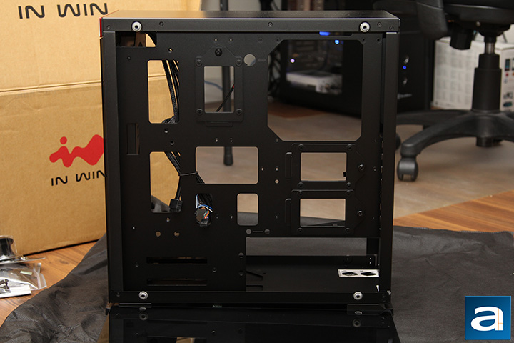 The In Win 805 features a bottom mounted power supply bay, but the chassis platform is not raised anywhere off the floor to accommodate units with fans at the bottom. The reason is because the company expects you to install your power supply upside down, and draw air from inside the chassis into your PSU for rear exhaust. I am not a fan of such a design, and I do not believe making a grille at the bottom is all that hard. Also, a good case usually has thin layer of foam to dampen any vibrations caused by your power supply against your chassis back panel. The 805 has neither, which is unfortunate.