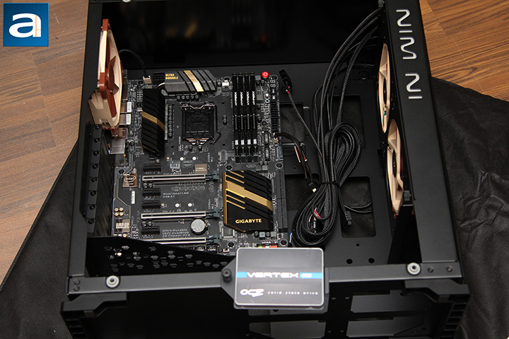 The rest of the installation process came and went with some thinking, as I continued to install the rest of my components like my SSD. The one shown in the photo is the OCZ Vertex 460 240GB, which I am not using in my actual build, but for the sake of demonstration, I will use it. It goes at the back of the motherboard tray. Unless you count thumbscrews as tool-free, installation of most components will require you to keep your screwdriver handy. This includes all add-on cards, as well as your storage drives. I do not have much beef against this though, since it is usually much more secure, and it is not like I will take my computer apart occasionally anyway. As you can see, the 805 can actually accommodate a large water cooling radiator in front. I am personally not huge into water cooling, so I will just take advantage with the unrestricted airflow design in my particular install instead with some Noctua NF-S12A PWM fans all around.