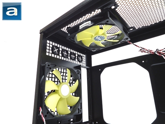 As stated previously, the In Win Dragon Rider is able to house up to eATX sized motherboards. mATX and ATX are also compatible with the case. The Dragon Rider's standoff mounting holes are labeled by numbers on the motherboard tray. Like many cases, the Dragon Rider has a 120mm exhaust fan seen at the back. The top exhaust also uses a preinstalled 120mm fan. Both exhaust fans use 3-pin motherboard headers, and none of them have fan filters. This is not much of an issue for the rear exhaust fan, but for the roof of the case, this is something we would have loved to see. Beside the top exhaust fan is another fan opening for a second one. Because the roof of the chassis allows the mounting option of two 120mm fans, water coolers could most definitely utilize the roof to install a radiator. Still, the only thing missing from the final ingredient is the filters. If one were to not mount a single additional 120mm fan, then dust particles would definitely find their way through the roof of the case, especially with an unused 120mm fan grille. Another problem, stated many times throughout the review, is the unnecessary extra openings found around the fans. From the above image, we can make out three to four extra hexagonal lines around the fan that will serve no purpose. Those extra holes are most definitely not going to improve the cooling performance of the case, and will just continue to be another way for dust to pass through into the case. In my personal opinion, I believe In Win should have paid more attention to the finer details of the case, which would have made a huge difference.