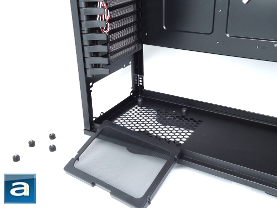 Here is the only fan filter in the entire case. Sure it is a fan filter so in that sense, I give props to In Win. However, and there is always a 'however', the single fan filter has one major design flaw. It is the fact that the filter goes between the bottom grille and the PSU. This means that in order to clean the fan filter, one would need to take out your power supply to clean the filter. Of course any person could stick a vacuum cleaner through the bottom, although that really is not the most effective method of cleaning a filter.
