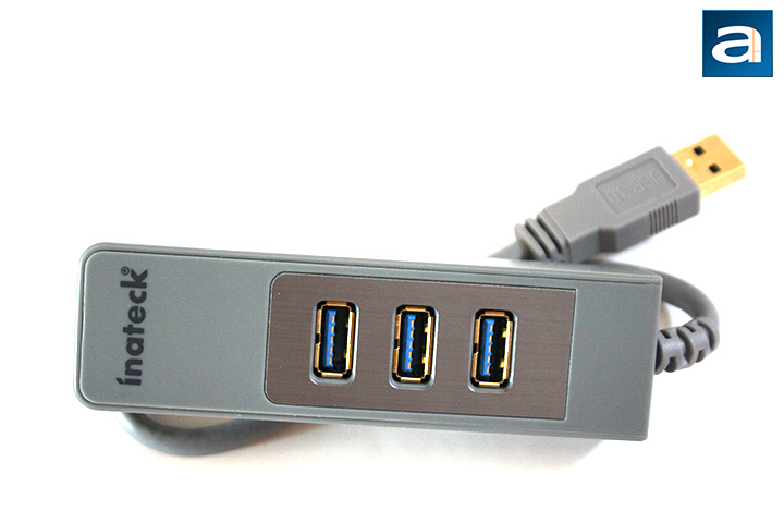 Most USB hubs come in two different load styles; the side load style, and the top load style. Older USB hubs have favored the side load style, but more recently, manufacturers began leaning towards a top load style. The Inateck HB4009 features a top load style, but what is better comes down to personal preference. All three of the USB ports are USB 3.0 compliant. Unlike many USB hubs I have seen in the past, the HB4009 features USB ports that are spaced out evenly for USB flash drives with larger swivel covers, which is a very nice touch. All of the female USB connector on the unit including the Magic-Port are gold-plated. However, as we have mentioned in many other reviews here at APH Networks, gold-plated USB connectors are nice to have, and it is pretty to look at, but it does not really do anything practically or electrically.