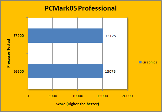 The E7200 did not pose any significant performance advantage over the E6600 in PCMark05; where a statistical tie is presented as far as the Graphics benchmark went. However, things were slightly different in the CPU benchmark; making an approximate 5% score advantage for the E7200 and 2.8% in the Overall score.