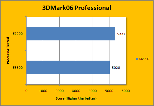 After all, we all game once in a while, right? Although CPU historically don't affect gaming performance too much, the latest graphics cards puts the CPU in quite a weird position -- a weak CPU is bottlenecking some super powerful GPU. In this case, while the E6600 is one heck of a processor by itself, the latest generation E7200 for the budget crowd is quite an interesting processing. As far as stock performance goes, the 3dMark06 CPU rating of the E7200 over the E6600 is 8%, while in the Overall and SM2.0 score are both roughly 5% in favor of the E7200. The lowest of all is the relatively graphics card dependent test of SM3.0/HDR, which translated to a small 2.7% difference; again in favor of the E7200.