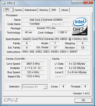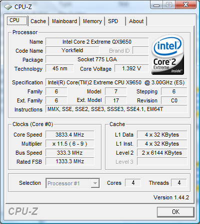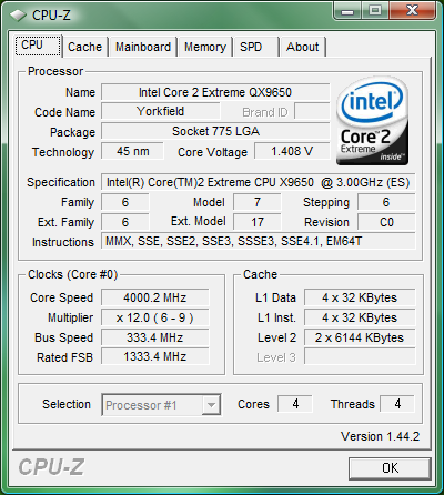 Finally, at 1.4500V I was able to bring the QX9650 to an impressive raw clock speed of 4.0GHz -- yes, a 4.0GHz Yorkfield CPU. It's "only" 33% over stock, but at this point, it's certainly a sizzling fast processor.