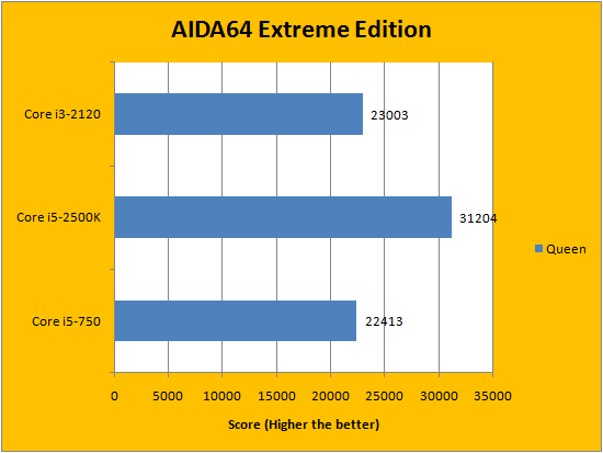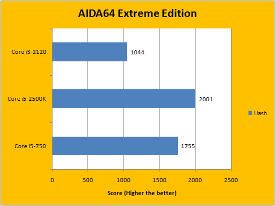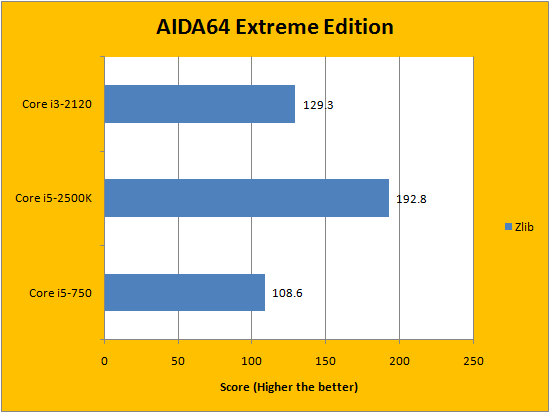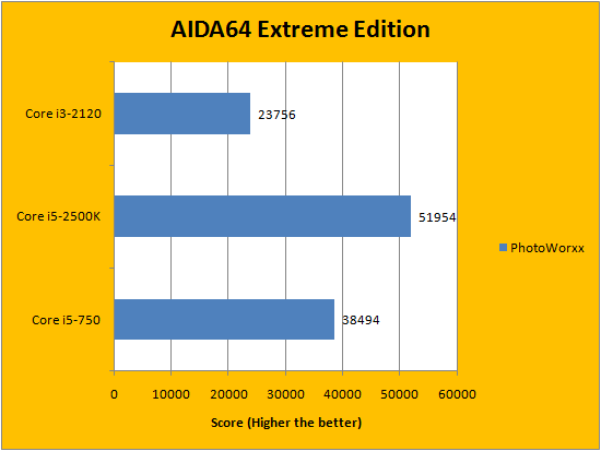 As always, our first set of benchmark results presented on the table are data obtained using AIDA64 CPU tests, formerly known as EVEREST. These synthetic tests, while not directly reflective of real life applications, provide very valuable insight to relative performance of computer hardware with easy to understand numbers. Unlike our RAM and motherboard tests, benchmarking different CPUs actually provide noticeably different scores. As shown in our graphs above, it is unquestionable how much faster the Core i5-2500K is compared to the other two. However, it is interesting to see how the Core i5-750, a processor with two more physical cores than the Core i3-2120, trades spots continuously.