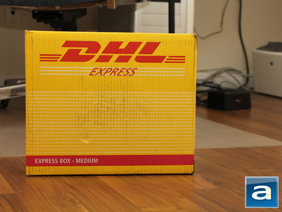 I am not going to lie; I actually took these photos more than a month ago, and let me tell you this -- with my recent procurement of some Canon L-series lens that cannot be obtained without committing some form of credit card adultery, they really put anything you see in this review to shame. The sharpness of the items in the foreground, and the out of focus light rendering of the background is so impressive, you will need to stay tuned for some of my future reviews to get a hold of the awesome eye candy. Off topic discussion aside, Intel sent the processor to us here at APH Networks Calgary from their headquarters in California, USA. Upon its arrival, I enthusiastically ripped apart the medium sized, yellow DHL Express shipping box. Everything arriving in excellent condition as always, so I got straight to work.