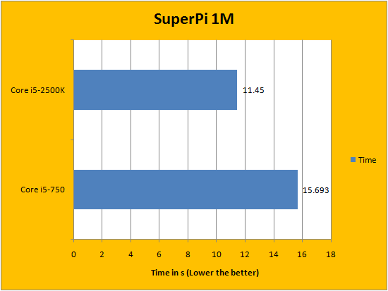 Back when I had a Newcastle core Athlon 64 3000+, calculating to one million digits took over 40 seconds. When I got my Core 2 Duo E6300 in 2006, the time was reduced to 29 seconds. I then overclocked it to 2.8GHz shortly, shaving an impressive 10 seconds off. The Core 2 Extreme QX9650 came along in 2007 and blew them all away with a 15.563 second official time. When I gave my heavily overclocked Core i5-750 a shot last year, 4.00 GHz on the dial returned a time of just over 10 seconds. But the tables have turned. Again. The 3.3GHz Intel Core i5-2500K posted an impressive 11.45 second time to one million digits of Pi with Turbo Boost off, and overclocking it to 4.5GHz will bring it into the 8's easily. We will cover that in just a moment.