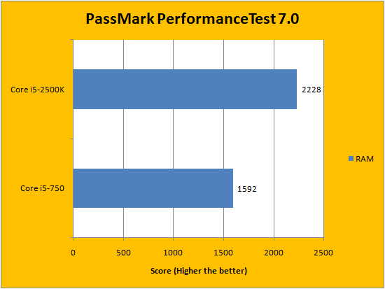We run PassMark PerformanceTest 7.0 to evaluate four different areas of our system; coming down to the CPU, RAM, 2D Graphics, and 3D Graphics. You are probably pretty tired by now of all the breathtaking and heart pounding scores delivered by Intel's latest $200 processor we posted. So I am not going to spend too much time in this area, but again, needless to say the i5-2500K kicked the i5-750's butt, as shown in our graphs above. If you have been following this review since the beginning, or have at least read all the benchmark results, it is probably nothing surprising at this point. Sandy Bridge rocks.