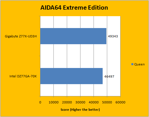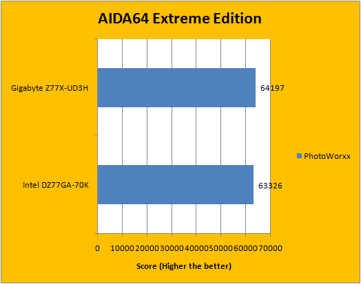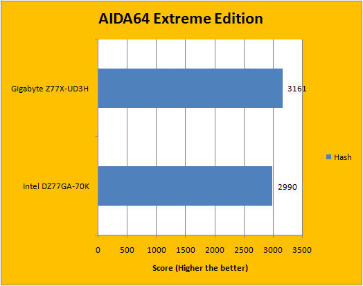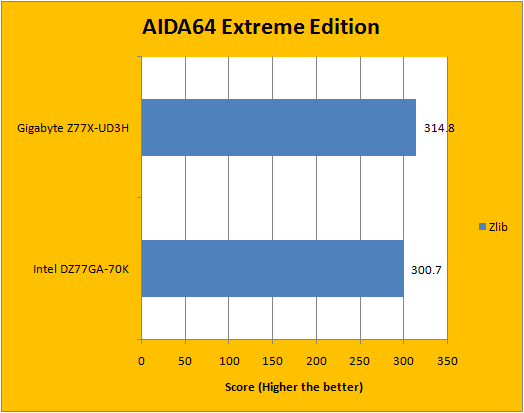 Alright, let's begin the most boring part of our motherboard review today: The benchmarks. If you are reading this, you are one of the few who didn't skip over this section and went straight for the conclusion, haha. This is because benchmarking motherboards are usually, well, not very useful. We still do them anyway, but nowadays with so many features on the processor itself, evaluating a motherboard in this manner has become somewhat irrelevant. As always, our first set of benchmark results presented on the table are data obtained using AIDA64 CPU tests, formerly known as EVEREST. The results are plugged into our graphs above, with comparison against the Gigabyte GA-Z77X-UD3H. The Intel Desktop Board DZ77GA-70K was actually outperformed by its Gigabyte counterpart in most tests, with a small but measurable difference out of the box. A quick look into CPU-Z shows that Gigabyte did bump the base clock up slightly under load, giving the processor a minute overclocking advantage.