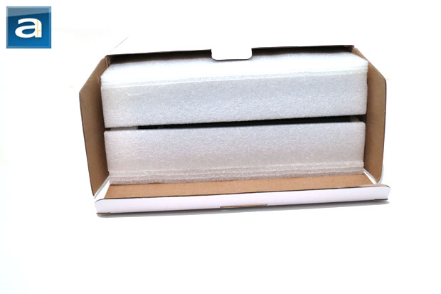 After removing the small cardboard cover, we are greeted with the actual box that houses the iStarUSA BPN-DE230SS-SILVER. There really isn't too much to say here, other than the small white cardboard box is simplistic. The box opens easily after taking out the flap on the side, and opens as one would expect it to. Inside this box, we will find our hard drive hot swap bay and some accessories sandwiched between two foam brackets. With these brackets, everything inside the packaging does not move around, and stays in place as expected.