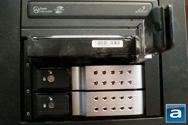 When it comes to actually using the iStarUSA BPN-DE230SS-SILVER, it does not disappoint at all. Accessing the drive bay is as easy as popping open the front panel using the spring lock mechanism by simply pulling up on the plastic handle. Next, we just need to insert the hard drive, and then close the front door back up, and we have completely installed our hard drive. This is the main reason people use these hot swap bays, as they provide simplicity and ease of access. Taking a hard drive back out is just as easy, due to the spring lock that pops the drive back out when you open up the front door to any of the drives. Two keys are also provided with the package, which allows users to lock up the individual drive doors and discourage people from removing the drives. Although it may not be too useful for home usage, in an enterprise environment, or even taking your PC to a LAN party, security is important. My only concern with this device overall is the noise emitted from the fan, since it is fairly small at 70mm, a slight buzzing can be heard on high. It is more acceptable when the fan is set to the speed setting of low, but the lack of vibration dampeners seems to hurt it a bit when the drives start spinning up.