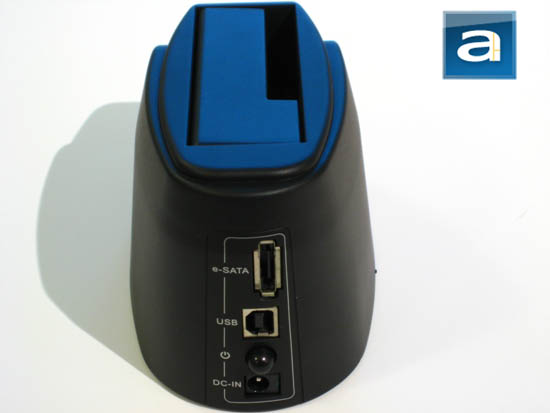 The back of the iStarUSA xAGE is actually quite simple; the array of connectors are lined up vertically from top to bottom in the following order: eSATA port, USB port, power button, and power input jack. Like in most other docks, I often wonder why they would place the power button at the back. For pure convenience, it would be much better to have it on the front.