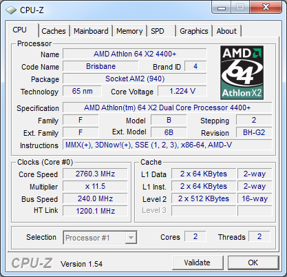 This is actually the first time I measured overclocking capabilities of a mini-ITX motherboard, and I was not disappointed at all by the results despite the obvious maximum voltage limitation! Raising the bus speed to 240MHz and retaining the multiplier at stock 11.5x, the end result is a very commendable 2.76GHz Orthos stable -- not bad at all. Closing off the day with a 20% overclock on a legacy Athlon 64 X2 with a mITX system, the results simply speak for themselves. Just for your reference, using the exact same chip back in 2008, I was only able to clock it up to 3.00GHz at 1.45V using the high end Asus M3N-HT Deluxe motherboard. Neither the processor nor the motherboard is built for maximum overclocking potential, but even with a less than optimal combination the system has achieved this goal in good manners. Good stuff!