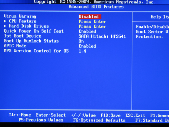 Configuration of CPU features such as enabling/disabling Hyper-Threading can be done under Advanced BIOS Features. The user can also set the first boot device. Okay, I know this isn't very interesting, but I promise it will get better haha.