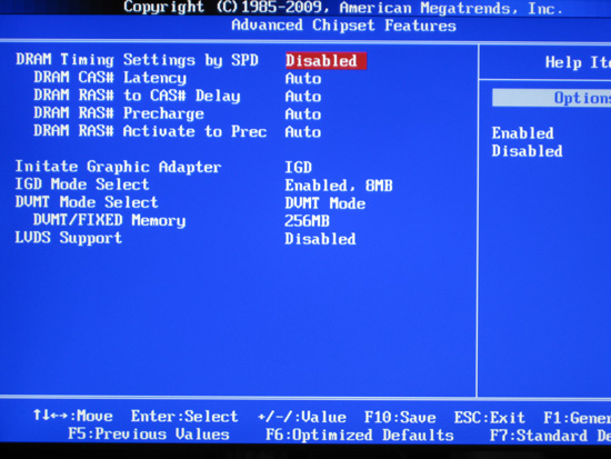 You can actually manually adjust basic memory timings under Advanced Chipset Features. Allocated integrated graphics memory can also be set to 4MB or 8MB as per user configuration.