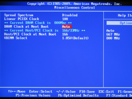 Finally, we have the Miscellaneous Control screen. The options are fairly straightforward -- PCI Express and PCI frequency, RAM frequency, and memory voltage. Again, it is not anything fancy by any means, but at least you have basic control over the components. It is certainly a lot less restrictive than most laptops and retail desktop computers!