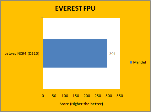 FPU performance isn't necessarily the D510's strong points, but still provides commendable performance for a budget low power consumption CPU (Just don't try to compare it against a Core i5 or i7, haha). The Julia benchmark score is comparable to the Core Duo T2500 once again, and the rest of the test results -- Mandel and SinJulia -- is roughly on the same level as a Pentium M 730 and 2x Pentium III-S 1.26GHz, respectively.
