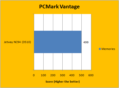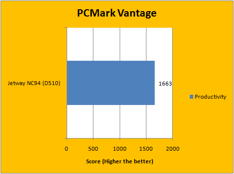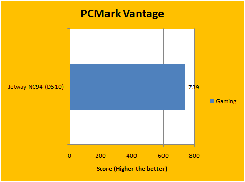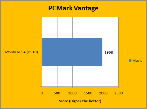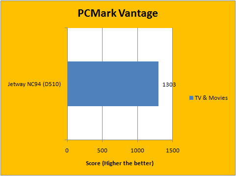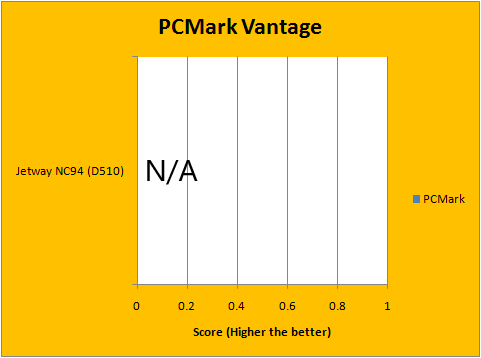 I have run into quite a few issues when running PCMark Vantage on our system equipped with the Intel Atom D510 processor on Jetway's NC94FL-510-LF mini-ITX motherboard. I couldn't get the benchmark to complete without crashing on the first test, but the rest of the sections can be taken to completion successfully -- but only in 32-bit mode. Fortunately or unfortunately, I am not the only one with these issues in an Intel Atom setup. The results are shown in our graphs above. A quick validation of some tests in real life scenarios is that the Intel Atom D510 is not capable of handling 1080p videos according to my tests.