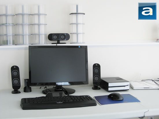 Located near the bottom right corner are the storage ports. The Intel NM10 chipset provides native support for two Serial ATA ports, located between the heatsink and PCI slot. JMicron's JMB363 provides two additional Serial ATA and one floppy drive connector, which can be found to the right of the two DDR2 memory slots, as shown in our photo above. The JMicron controller supports RAID 0, 1, 0+1, and JBOD, but the Intel NM10 chipset itself does not feature Intel's Matrix Storage Technology. From my experience with this board, it seems that the native Intel SATA ports work a little smoother. The front panel headers should be fairly straightforward -- interesting to note is that there are two power LED headers for different cases; this includes both a 2-pin and 3-pin configuration. A separate block contains the speaker connector pins, although the Jetway NC96FL-510-LF already has a built in speaker -- we will show you that in just a moment.
