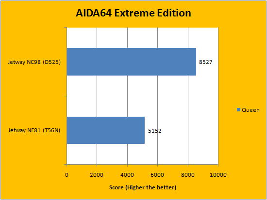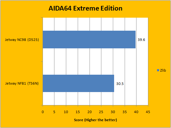 At first, I was quite astonished by the results from this set of tests. To be honest, I did not expect the Intel Atom D525 to perform so much better than the AMD eOntario T56N. However, after double checking the benchmarks, these results were indeed correct. The only part the eOntario was able to beat the Atom was in the AES test, but the rest of the tests curved towards the Atom's favor by quite a big margin. After thinking about it some more, I recalled that the Intel Atom D525 had Hyper-Threading, and since AIDA64's CPU tests are multithreaded, the Intel Atom D525 had a clear advantage. From these results, we can project that for most multithreaded tests, the Intel Atom will be able to beat the eOntario processor. Please be wary that just looking at the numbers as they do not always tell the full story. In later tests, we will see that the eOntario CPU is more powerful than the Atom in non-multithreaded applications.