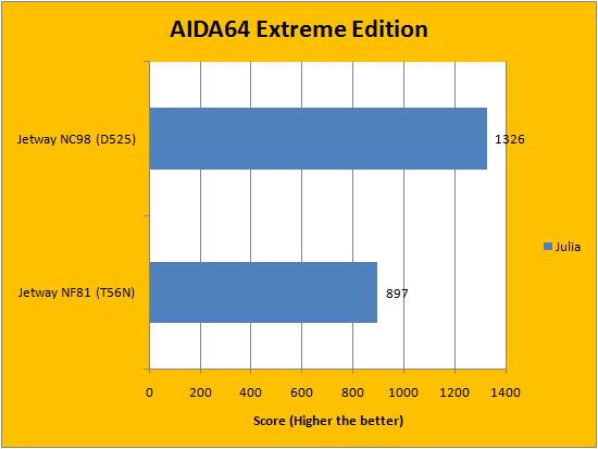 In terms of the FPU benchmarks, we find a more even split of the results. The eOntario on the Jetway NF81-T56N-LF takes the VP8 and SinJulia tests, while the Atom wins the Julia and Mandel tests. The biggest gap is found in the Julia test. This is again due to the availability of Hyper-Threading with the D525. These results should be taken lightly, as they are only synthetic benchmarks and do not always represent the real world performance of the motherboards. At this point it is safe to say that for most multithreaded tasks, the Atom still holds an advantage thanks to Hyper-Threading.