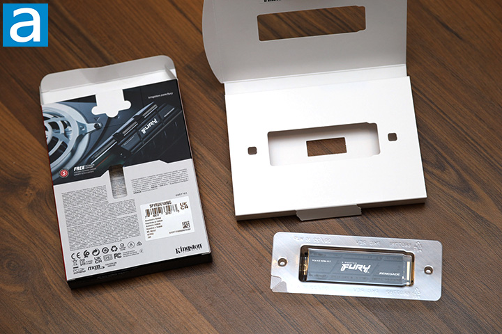 After opening a flap at the top of the box, a slide-out cardboard tray is revealed. Clipped between two clear plastic tray pieces is the Kingston FURY Renegade 1TB. A sticker on the inside flap of the cardboard tray is a sticker that contains an Acronis True Image HD license key. The Kingston KC3000 1TB also came with it, but the no heatsink version of the FURY Renegade 1TB did not. This is it -- out of the box, you will get nothing more than what you need, not even a manual or any type of product literature. Not that we need them anyway, of course.