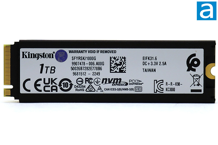 Flipping the Kingston FURY Renegade 1TB around and you will find no components of interest. The label on this side of the Kingston FURY Renegade SSD carries miscellaneous information such as its model name, capacity, certification logos, and part numbers. Other than that, it is completely blank as all the components are located on the other side. This SSD is made in Taiwan.