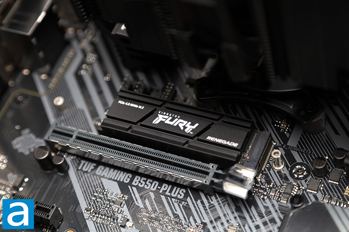 The Kingston FURY Renegade 1TB is the company's latest PCIe 4.0-based performance NVMe SSD. We are quite familiar with this drive, since in June of last year, I reviewed the FURY Renegade 1TB with a graphene-coated aluminum sticker, which has some heat transfer capabilities. Actual cooling depended on the heatsink that comes with your motherboard to prevent thermal throttling, but the one we are reviewing today comes with a beefy ventilated aluminum heatsink, shown in our photo above. The big black heatsink is slightly wider than the PCB at 23.67mm, and the thickness increases to 10.5mm from 2.21mm. As beefy as it is, it is still PlayStation 5-compatible, since the drive and heatsink is below 11.25mm. Otherwise, it is electrically the exact same drive.
