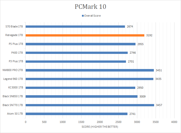 PCMark 10 is the latest version of the popular full system benchmark from UL. We used PCMark 10's Full System Drive Benchmark to test the performance of the Kingston FURY Renegade 1TB. According to UL, the Full System Drive Benchmark uses a wide-ranging set of real-world traces from popular applications and common tasks to fully test the performance of the fastest modern drives. The following traces were used and defined as follows: