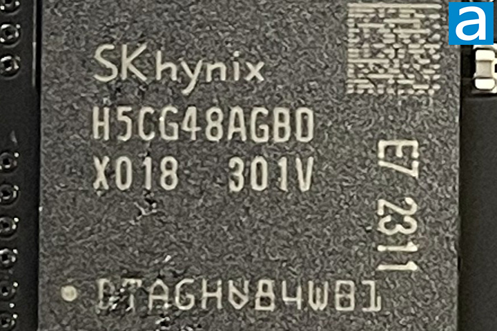 A closer look at the memory chips on the Kingston FURY Renegade DDR5-7200 2x16GB dual channel memory kit. The photo above should be quite clear -- it says "H5CG48AGBDX018" on each IC. We have previously seen these in the Patriot Viper Venom DDR5-7200 2x16GB. These are SK hynix-manufactured chips, with eight 2GB chips on one side only for a total of 16GB on each DIMM. As mentioned on the previous page, these RAM modules run at a frequency of DDR5-7200 with 38-44-44-105 latencies. These latencies are comparable but different than the competition, and we will see how they perform in just a moment. These modules operate at a stock voltage of 1.45V, which is higher than the base DDR5 voltage of 1.1V.
