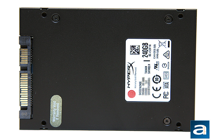 As always, there are no exposed printed circuit boards like you would normally see with a traditional hard disk. The only thing that is common between the Kingston HyperX Savage 240GB and a traditional hard disk drive is its SATA 6Gb/s and corresponding power connector at the end. As shown in our photo above, you will find a large label with the usual series of certification logos, along with information on the brand, capacity, and serial number. In case you missed it, our particular unit is the Kingston HyperX Savage 240GB, haha. Like many SSDs we have reviewed in the past, the Kingston drive is made in Taiwan.