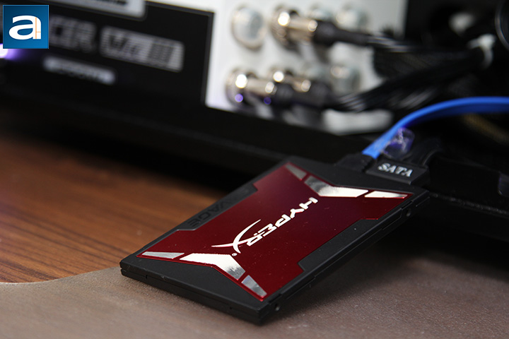 Measuring in at 100 mm x 69.9 mm x 7.0 mm, the Kingston HyperX Savage 240GB conforms to the slim standard, and will ensure wide compatibility. It is also quite lightweight for having a metal enclosure at 96g, but a bit heavier than the competition that uses plastic. If, for some reason, a full 9.5 mm is needed for installation, a rubber spacer will be included out of the box. On the other hand, if you want to use it in your desktop and your chassis has no 2.5" mount, then you are in luck -- a 3.5" adapter bracket is also included, so you can easily install this SSD in any standard desktop internal drive bay. This makes the HyperX Savage quite convenient to deploy in either environments for the end user. Nowadays, it is hard to find a case without a 2.5" drive bay, but if you ever want to retrofit this SSD into an older desktop, it is nice the company included such an accessory.