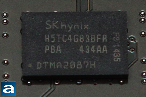 A closer look at the memory chips on the Kingston HyperX Savage HX324C11SRK2/16 2x8GB dual channel memory kit. The photo above should be quite clear -- it says "H5TC4G83BFR" on each IC. These are SK Hynix manufactured chips, with eight 512MB chips on each side for a total of 8GB on each DIMM. As mentioned on the previous page, these RAM modules run at a frequency of DDR3-2400 with 11-13-14-32 latencies at 1T command rate. They operate at a stock voltage of 1.65V, which is right on the Core i3/i5/i7 maximum safe limit of 1.65V. Here is a table of specifications for the ICs, as obtained from Hynix's website: