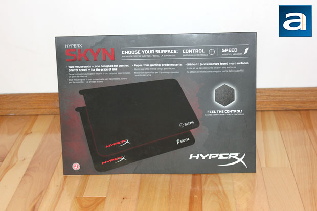Taking the HyperX Skyn out of the brown corrugated box revealed it was packaged in a very nice folder. This was a very appropriate form of packaging in my standards, as it shows the company is considerate about shelf space and efficiency. Taking a closer look at the front of the folder reveals the design, being overall black with a splash of red, stays true to the family of products Kingston offers with their HyperX line. Aside from that, another intelligent design I would like to mention is the slightly raised glossy lettering for the company name, product name, and the clear image of both the mousepads. Since Kingston sent us both the Control and Speed model of their Skyn line, there were two small hexagonal windows; one on the front and one on the back. This allows users to feel the textile of the mousepads even before opening the folder. It is a smart feature that would allow users to get a better feel -- quite literally -- of what they are buying the moment they pick it up off the shelves. Flipping it to the backside, you will find an outline of features and specification of the Skyn.