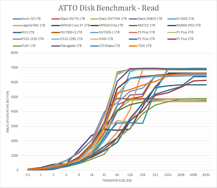 Our next set of tests are the usual ATTO read and write tests. ATTO is an often-quoted benchmark because it is easy to use and accurate. For the most part, it is a favorite among reviewers and I have grown to embrace it as much as the next for the last little while. ATTO uses easily compressible data, so compression-heavy controllers will perform very well here.