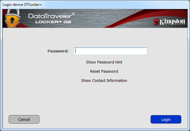 One of the biggest selling points of the Kingston DataTraveler Locker+ G2 32GB USB flash drive is it is a hardware encrypted drive. Without entering a password, no one can access your stored data. This means if you ever lose it, your private and confidential documents will not end up in the wrong hands. Even if you do not have any incriminating information stored on the drive, I am sure you do not want random strangers snooping through your data regardless of what. To get started, simply plug the Locker+ G2 into your computer's USB port, and execute the launcher program off the unsecured partition on the drive that simulates a CD-ROM drive. It will assist you in setting up a password, enter a password hint, and provide personal contact information.