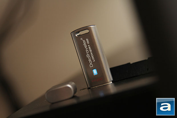 After covering the Patriot Supersonic Rage XT 32GB a couple of weeks ago, we are now back with another USB flash drive review. The Kingston DataTraveler Locker+ G2 32GB is definitely one of the sleeker drives out there; a quick glance at the specifications table pits this portable storage device at 58mm long, 18.6mm wide, and 9.75mm thick. Do keep in mind that, while it has a rather competitive storage capacity at 32GB, this is not a USB 3.0 disk, so you are probably better off comparing it against old school drives like the OCZ Rally2 (66.7mm x 15.9mm x 8mm) than the latest performance drives. With that in mind, the Kingston DataTraveler Locker+ G2 32GB will fit nicely on your keychain, pocket, or pretty much anywhere, for that matter -- without any complaints. Its solid metal construction creates an appealing appearance in conjunction with a solid feel that is second to none. Kingston does not specify how heavy the Locker+ G2 is, but a quick trip to our precision scale here at APH Networks told us it is 26g. It is a little heavier than products with plastic enclosures, but I can assure you no one is going to complain about its dimensions or its weight. Meanwhile, a blue LED is used to signify drive activity. It flashes blue behind when something is going on, and remains off when it is idling. The LED is not particularly bright, but being on the front face of the DataTraveler Locker+ G2, it is hard not to see it in action.