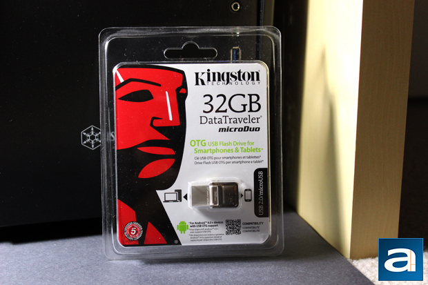 Sticking my hands into the envelope, I pull out the brown box as aforementioned, which holds the retail box of the Kingston DataTraveler microDuo 32GB. Unfortunately, the retail packaging is much like the rest of Kingston's products, which means awful blister packing. The red Easter Island head is also where it is, and the product name is printed predictably on the top right corner. The only difference is the green font to state this USB flash drive can be used with Android phones and tablets. The small Android mascot, Bugdroid, is located near the bottom to again affirm users of the usage for the Kingston DataTraveler microDuo 32GB. In addition, devices must be running Android 4.0 (Ice Cream Sandwich) or higher and is USB OTG, or USB On-The-Go compatible. Kingston has also kindly provided a site to check for compatibility, but a quick Google search will also accomplish the same task.