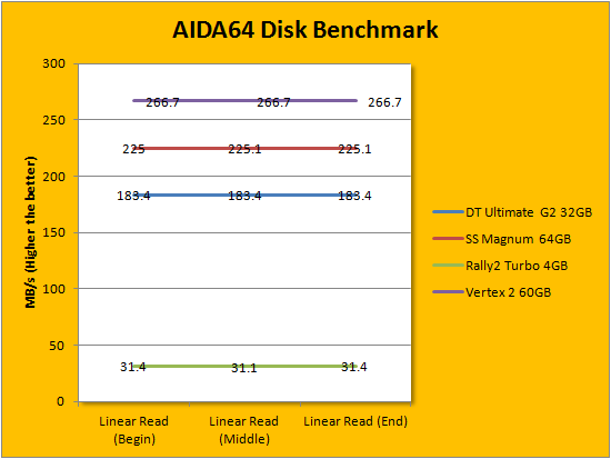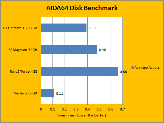 Before you start questioning, I would just like to make it clear that we do not expect the Kingston DataTraveler Ultimate G2 32GB flash drive to perform to SATA SSD standards, such as the OCZ Vertex 2 60GB used for reference purposes only. The Vertex 2 is a Serial ATA storage device optimized for maximum I/O performance as a boot drive, whereas the Ultimate G2, while advertised as a fast USB 3.0 drive, is designed to be a compact removable storage device only. On that note, however, our AIDA64 benchmarks show some impressive results. The Ultimate G2 delivers 183.4MB/s sequential read across the board. Its Random and buffered read comes in rather competitively with the Supersonic Magnum at 211.6MB/s and 162.4MB/s, respectively, while the average access time came in at 0.39ms. I was actually quite surprised at the results when I first tested it, especially with the buffered read and average access time, so I had to go back to my test bench to reconfirm the results.