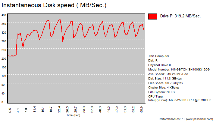 PassMark PerformanceTest 7.0's Advanced Disk Test, unlike HD Tune Pro 4.60, generates some awesome graphs right out of the box. It also provides valuable insight in simulating real world performance applications. To make things clear to you, the first graph simulates a database server, followed by a file server, web server, and workstation. These real world performance simulations seem to put the Kingston HyperX 120GB at a clear disadvantage compared to 240GB drives like the OCZ Agility 3 240GB. On the other hand, it absolutely destroys the Patriot Pyro 120GB -- delivering a significant lead literally across the board.